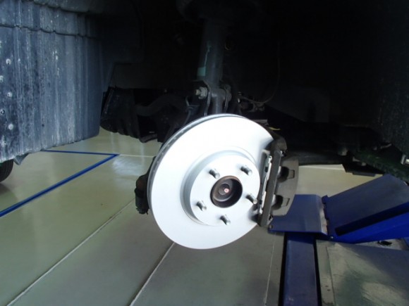 原因はフロントブレーキディスクの振れでした。ブレーキパッドと併せて交換をさせていただきました。