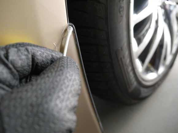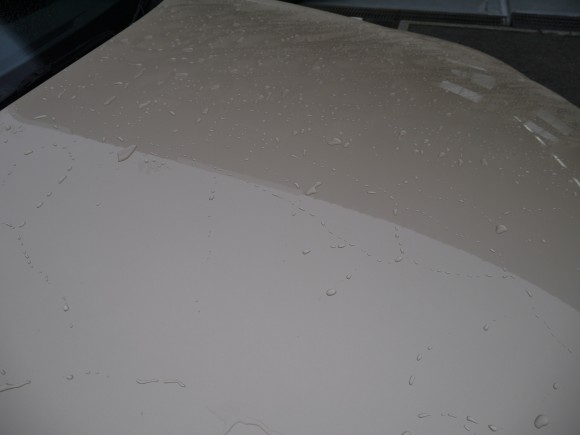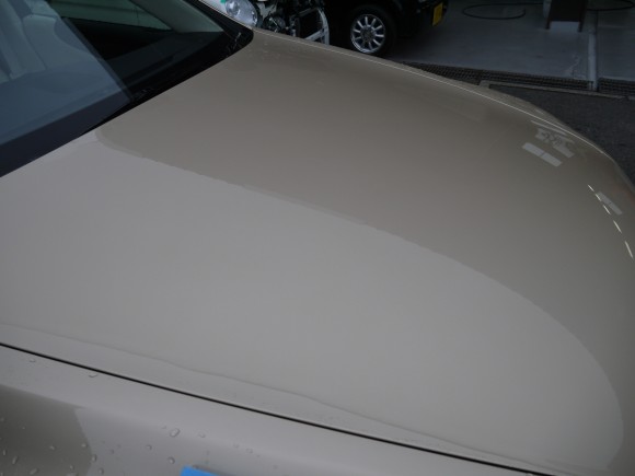 外装磨き後、洗車を行いガラスコーティングの下地を作ります ↑ 処理前は撥水し油分を含んでいます