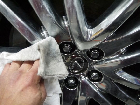 外装メッキ部分やアルミホイールはメタルコンパウンドを使い磨いています