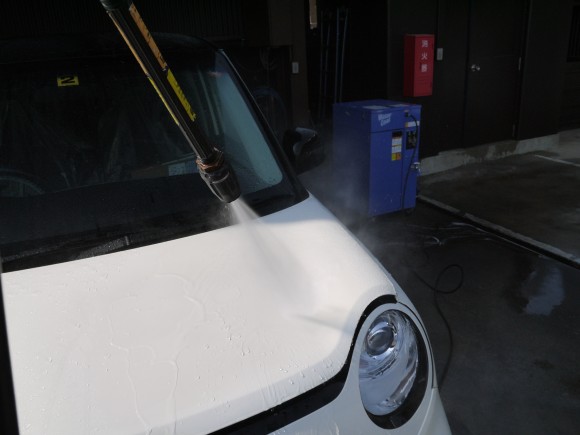 最後に広角ノズルで全体を仕上げてWater Coat 施工完了です
