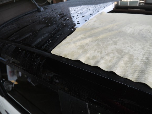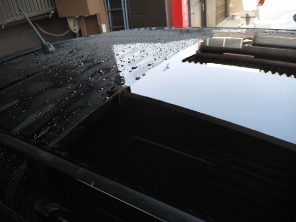 塗装面に水をかけると・・・新車時の撥水処理がされています