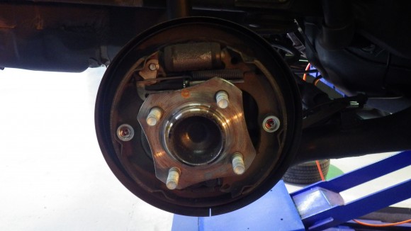 リアはブレーキドラムです。清掃、漏れを確認します。