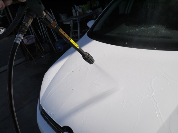 最後に広角ノズルで全体を仕上げてWater Coat 施工完了です