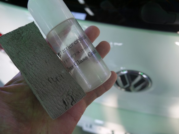 塗装面に結晶化ガラスを張り付けて空気中の炭酸ガスに触れる事で皮膜を形成します