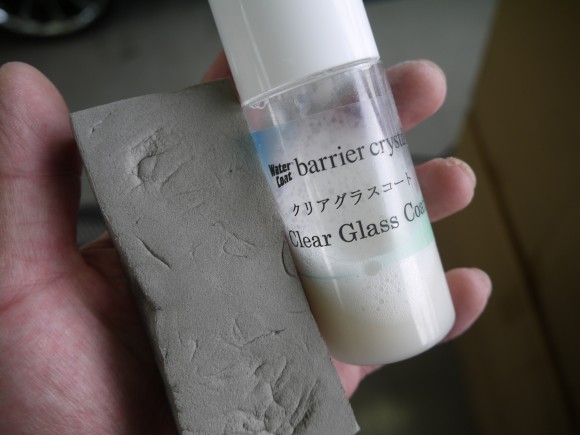 このままでは、水垢が付きやすくなるので撥水コート剤クリアグラスコートで保護しています
