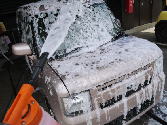 まず、ガラスコーティング前に洗車を行いボディの汚れを落とします