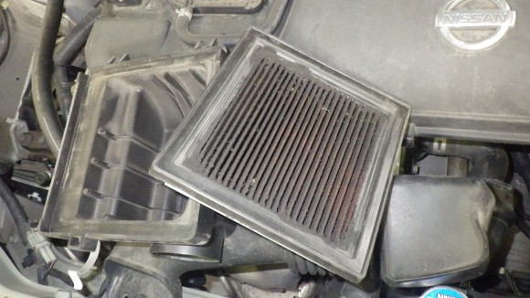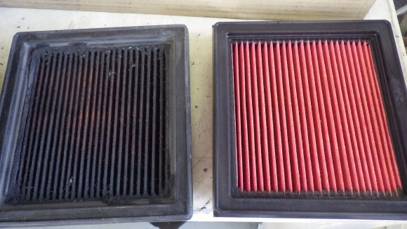 室内にあるエアコンフィルターです。黒いのは交換前ですがかなり汚れていました。