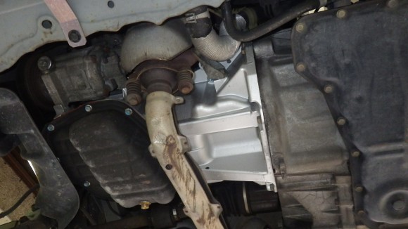 上からこぼれているのはオイルフィルターからでたオイルです。