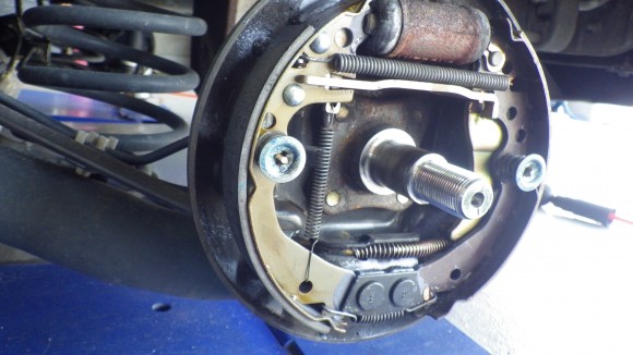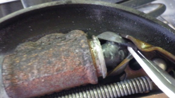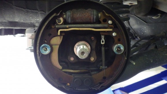 リアはドラムブレーキなのでカバーを外して点検します。