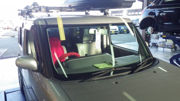 フロントガラスが割れているので交換します。