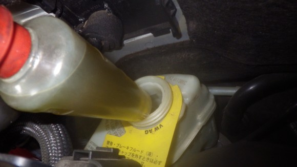 新しいオイルを補充しながら4輪のブレーキ配管のエア抜きと抜き替えをしました。