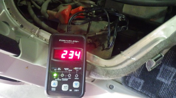 テスターを使用してバッテリーのチェックをしています。結果は良好でした。