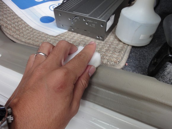 次に、洗浄では落ちなかったステップやピラーの汚れを落とします