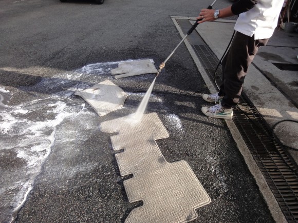 まず、洗車とフロアマットの洗浄を行いました