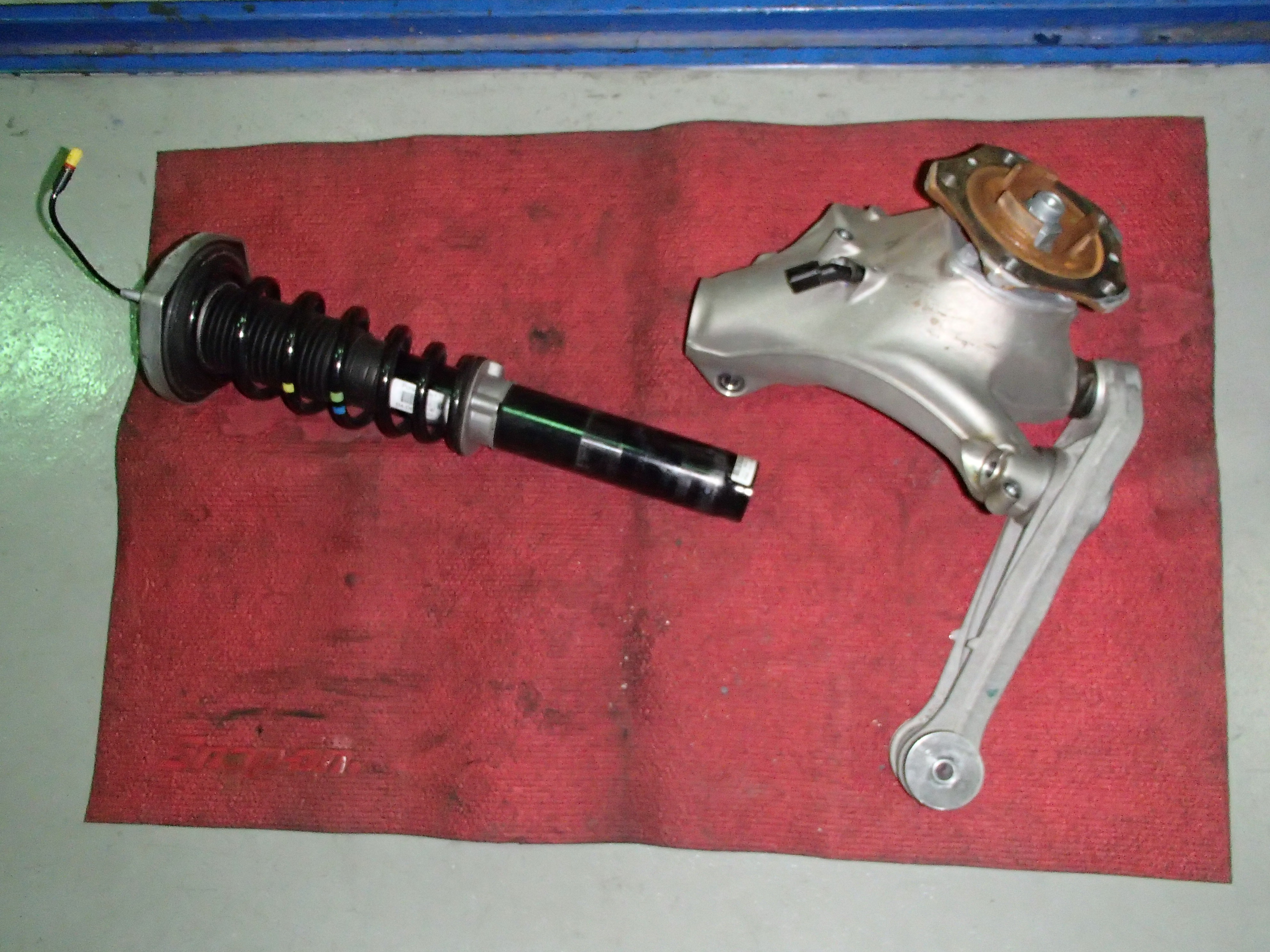 取り外したロアアーム、ナックルと純正のサスペンションです。