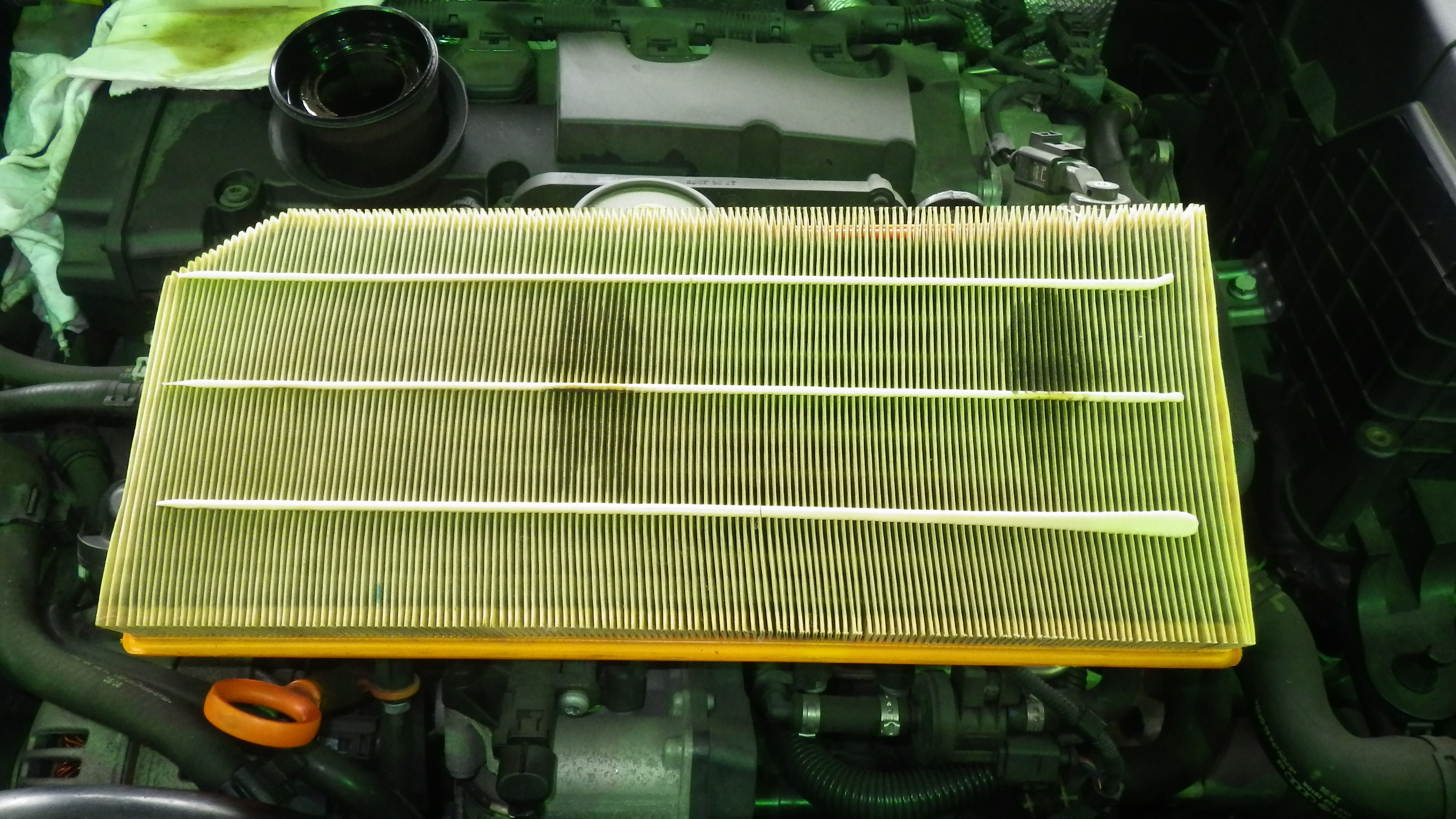 エンジンエアクリーナーエレメントです。清掃して組み付けしています。