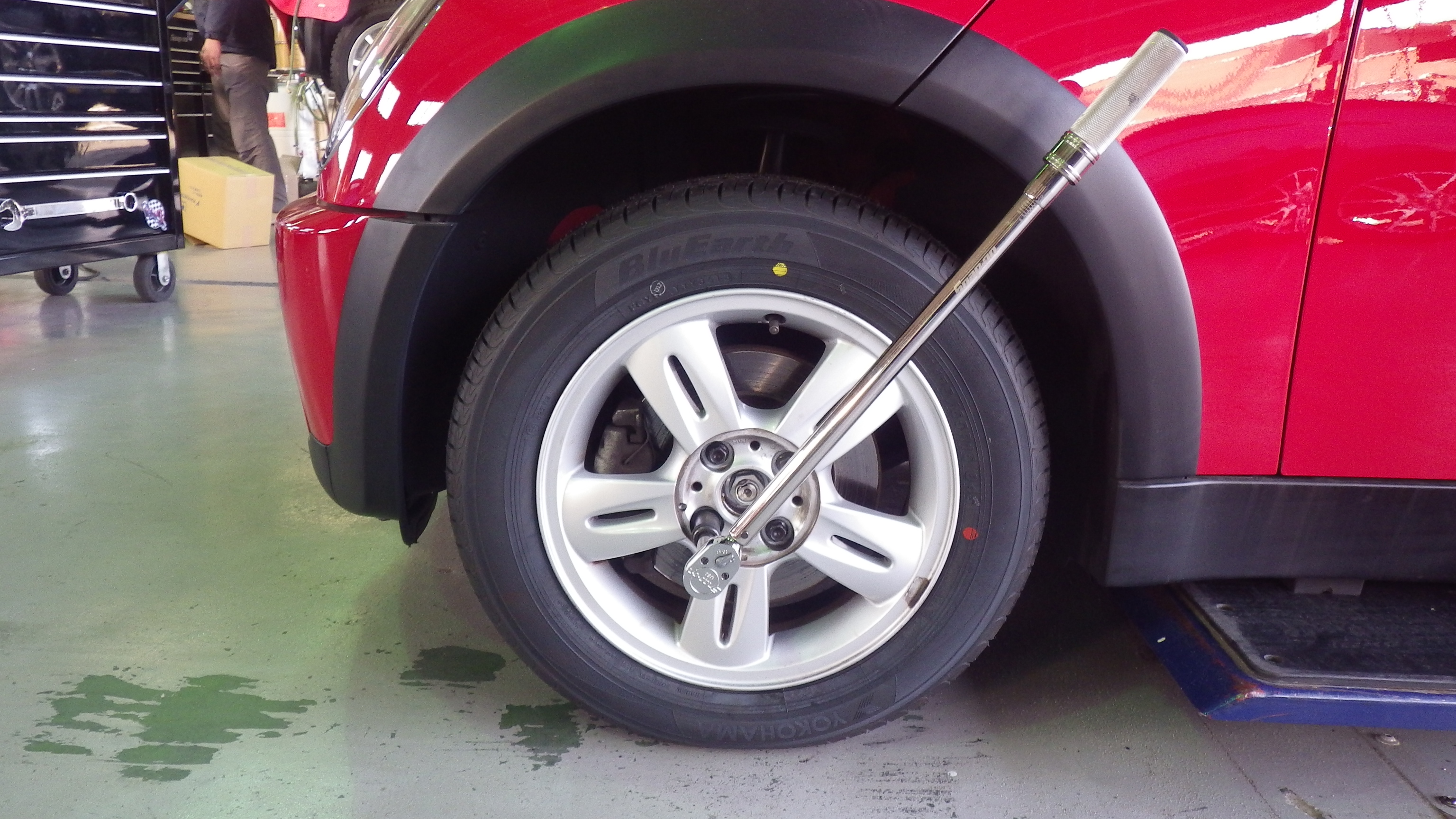 ホイールボルトの締め付けはトルクレンチにて規定トルクで締め付けしています。