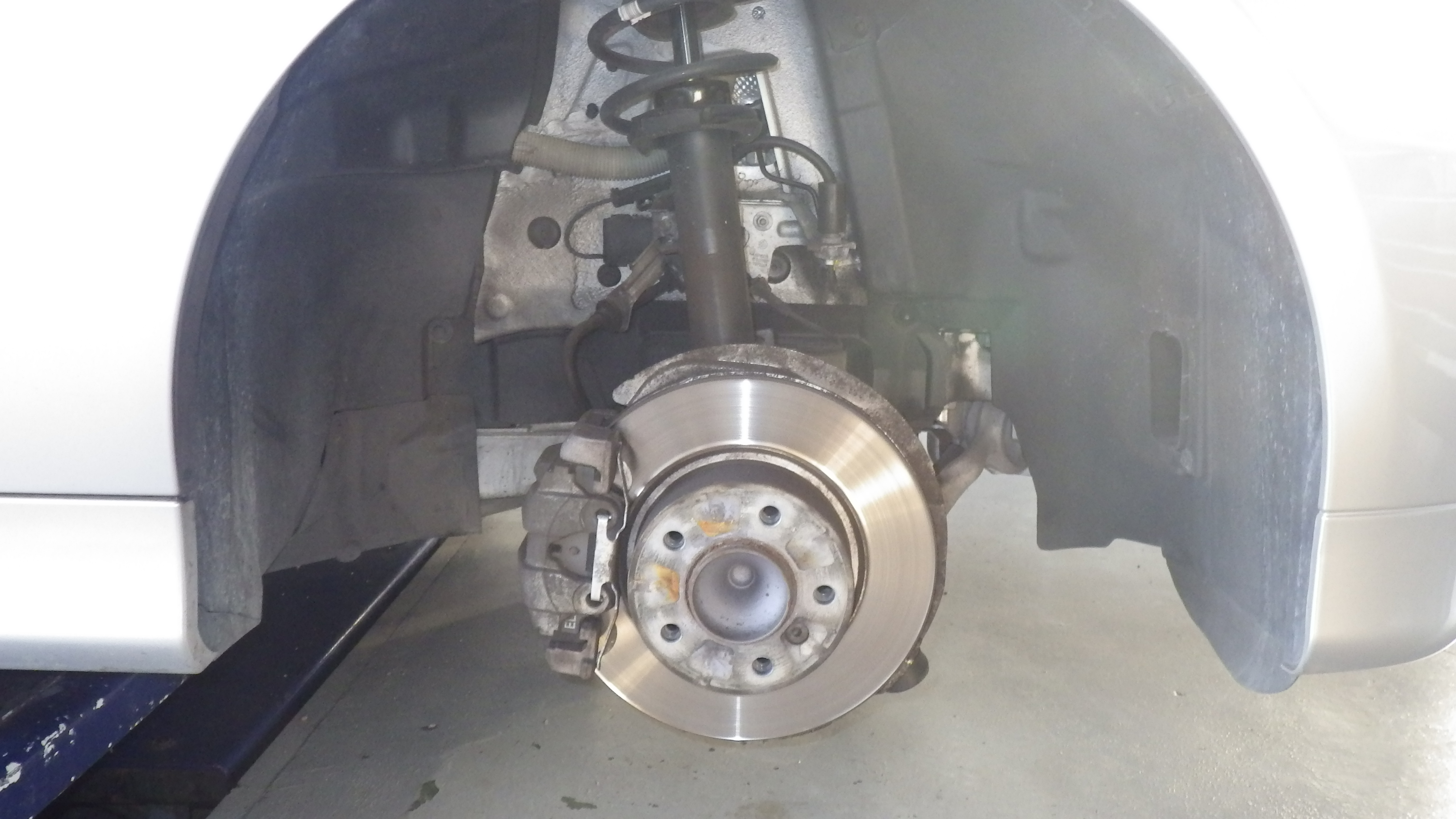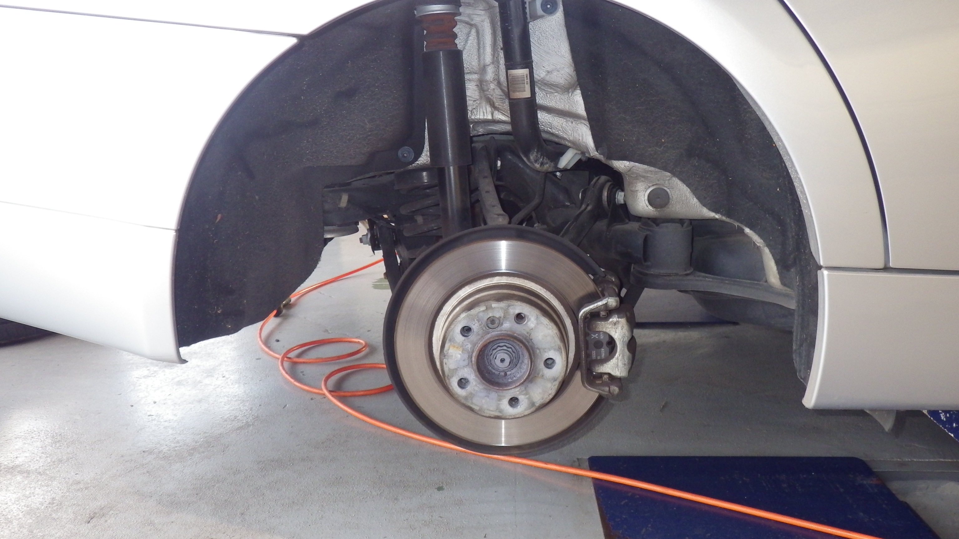 足回り、車体下部各所点検です。フロントの足回りです。