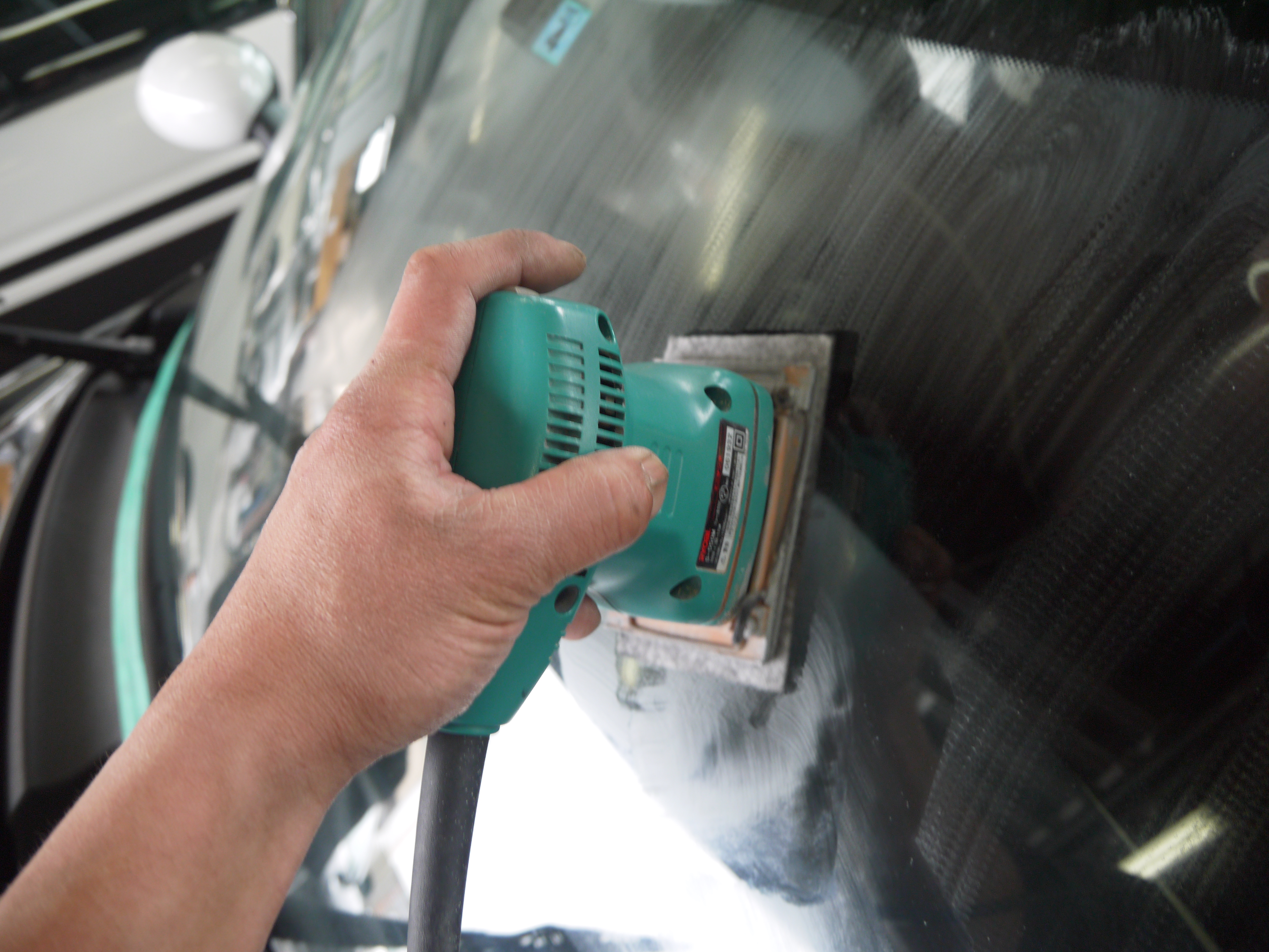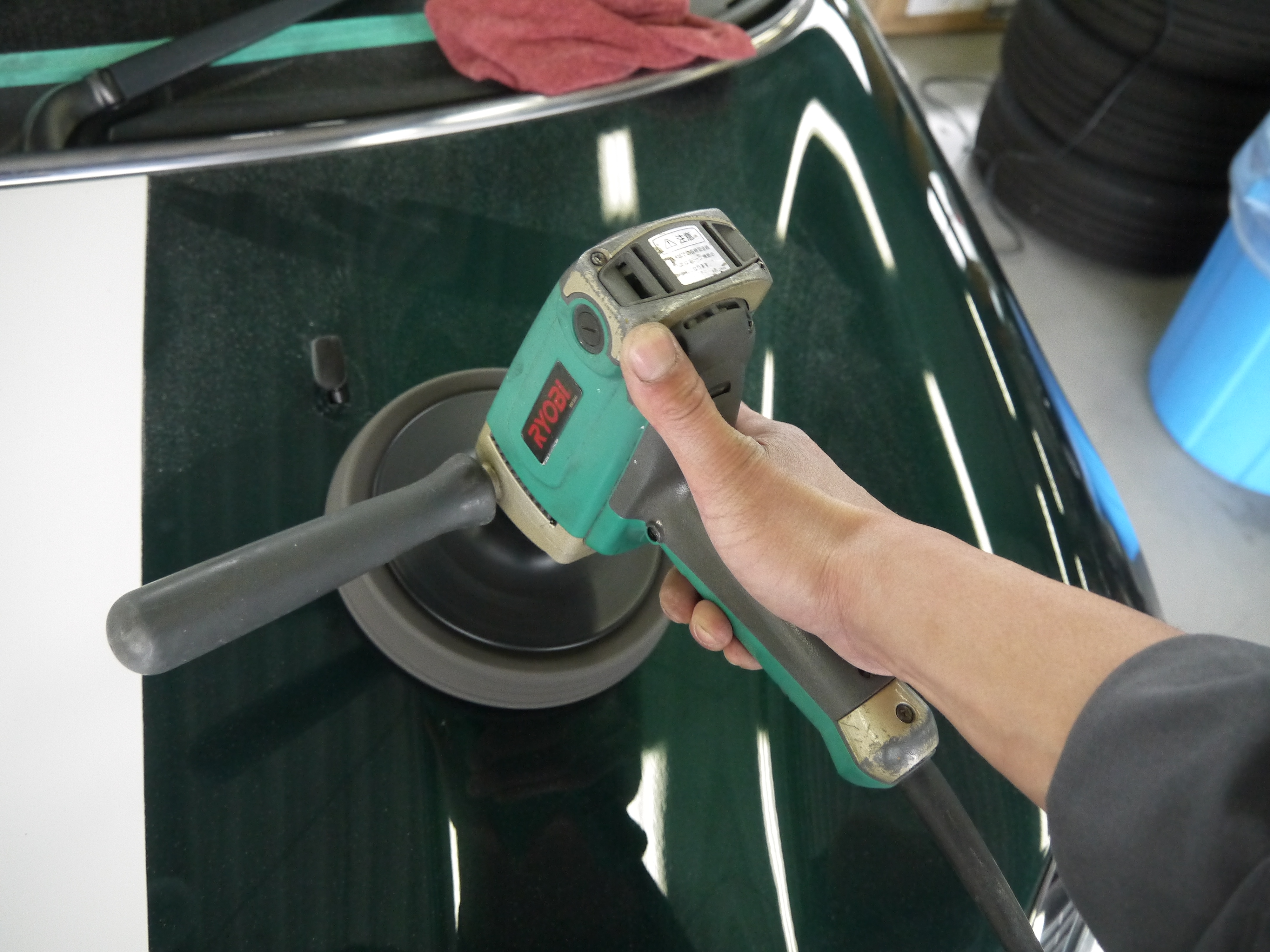 乾燥後、ポリッシャを使用して外装塗装面を磨いていきます