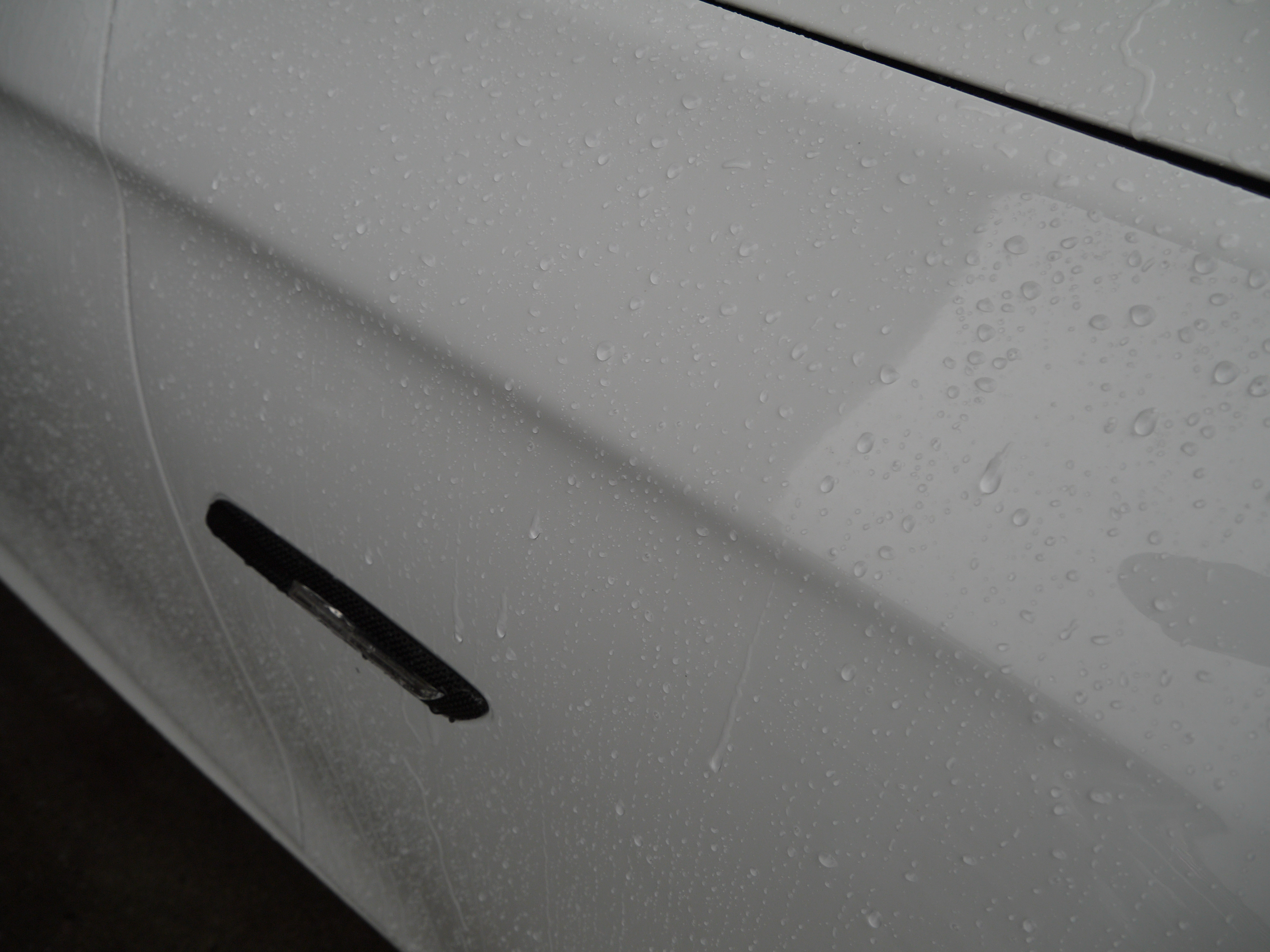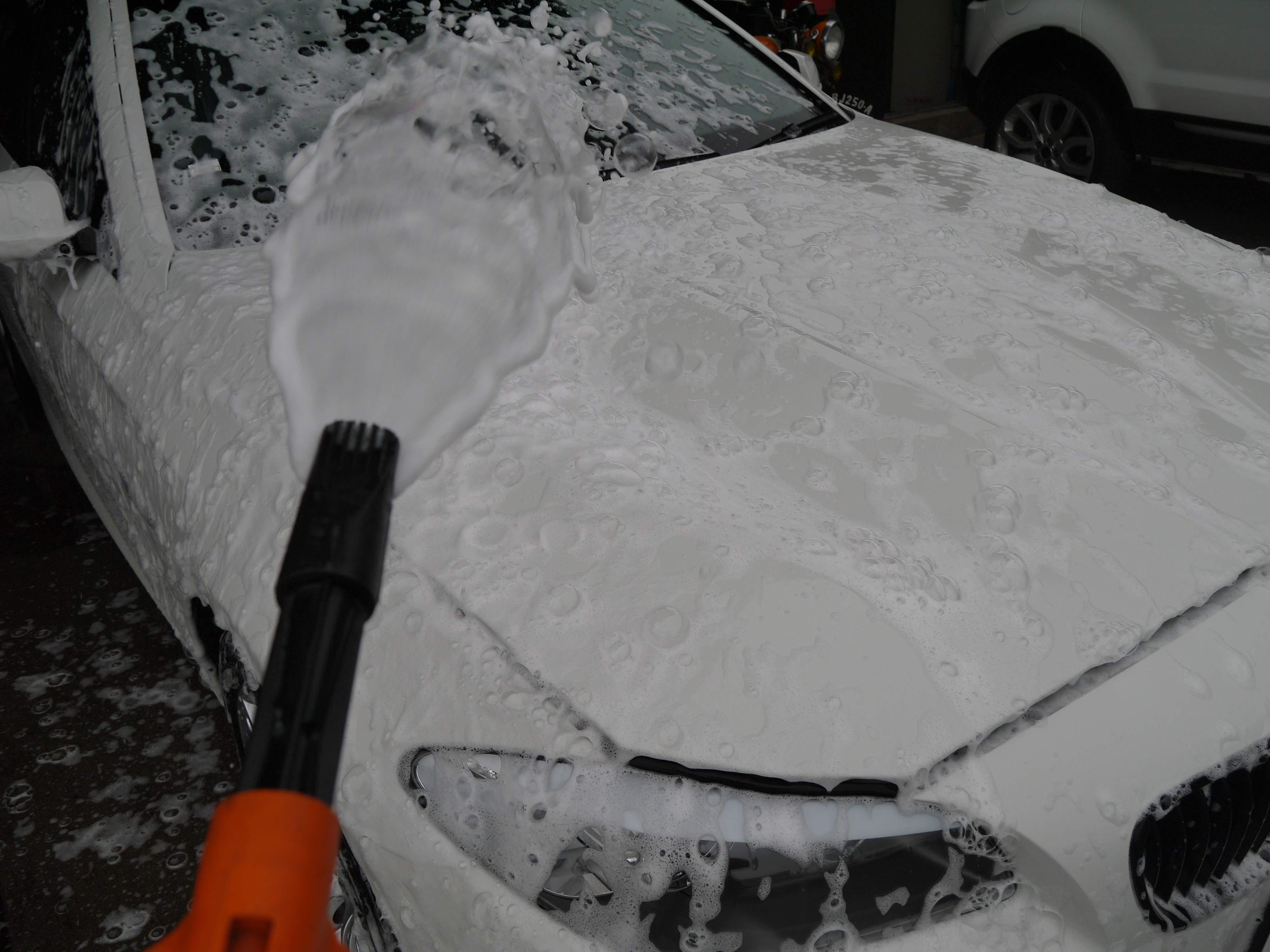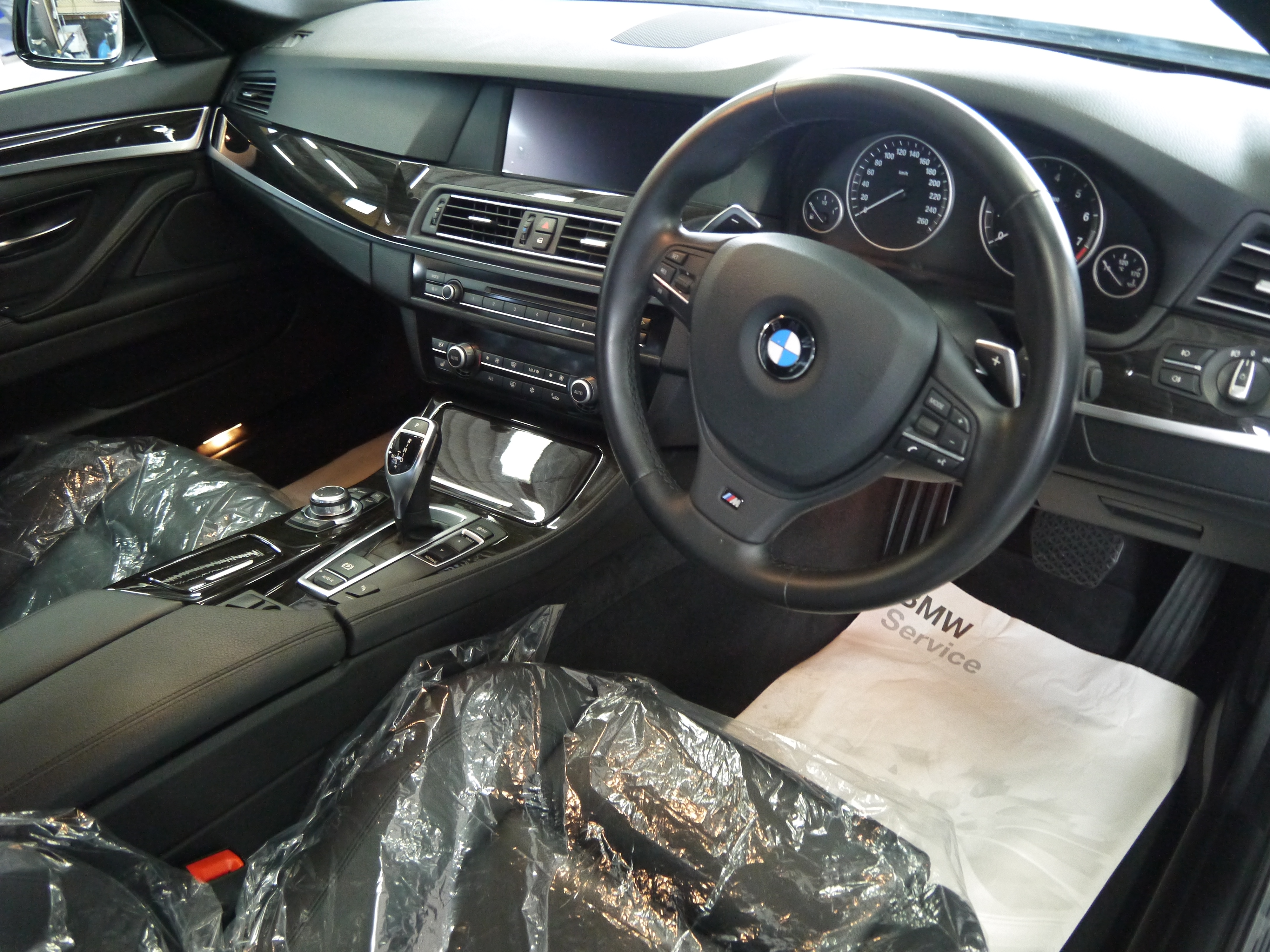 平成23年式 BMW 535i Mスポーツ 清掃・仕上げ! CH2499 2014/06/03/0 コメント/カテゴリ: コーティング・清掃 /作成者: takagiSTEP MOTORS selection BMW 525iの清掃・仕上げを行いました まず、アルミホイールの汚れを除去し ボディ塗装面の汚れを高圧洗浄機で飛ばしてから モッコモコシャンプーで洗い流しました 次に、鉄粉を除去して外装磨き下地を作りました 紫色に変色しているのが鉄粉です 乾燥後、ポリッシャを使用して外装塗装面を磨いていきます ポリッシャが入らない所は手作業で磨き仕上げました AFTER 磨き後の状態です 艶が引き出されて美しい塗装面になりましたね 外装磨き後、内装の清掃を行いました 清掃後、ガラスコーティングWater Coatを施す準備をします BEFORE 水をかけると・・・ コンパウンドに含まれる微量の油分が水を弾いています このままコーティングしても被膜が張り付かず不安定になります 塗装面に張り付いた油分を分解・除去します AFTER 分解・除去後、水が塗装面に張り付く状態になりました この状態になれば被膜が張り付き易く強度も上がります 油分除去後、Water Coatを施します 結晶化ガラスを塗装面に張り付ける事で 被膜を形成し親水性のガラス結晶体となります アルミホイールにも張り付ける事で 防汚性に優れ汚れを落ちやすくしてくれます 初期施工になるので BASE UP PROで被膜が安定するまでの犠牲塗膜を作りました 最後に広角ノズルで仕上げてWater Coat施工完了です 以上が清掃・仕上げ作業内容です STEP MOTORS selection 清掃・仕上げ担当 高木 大地