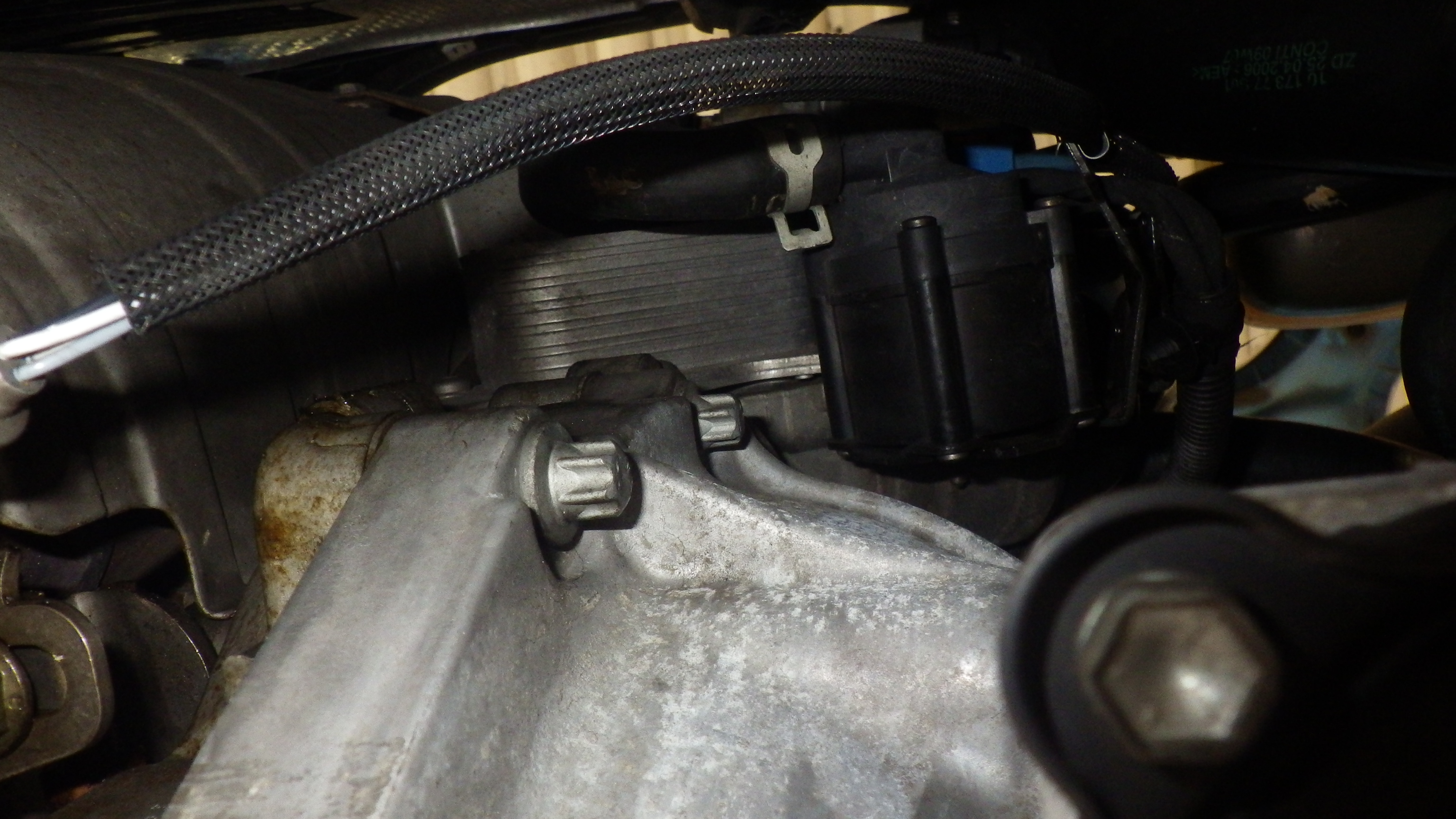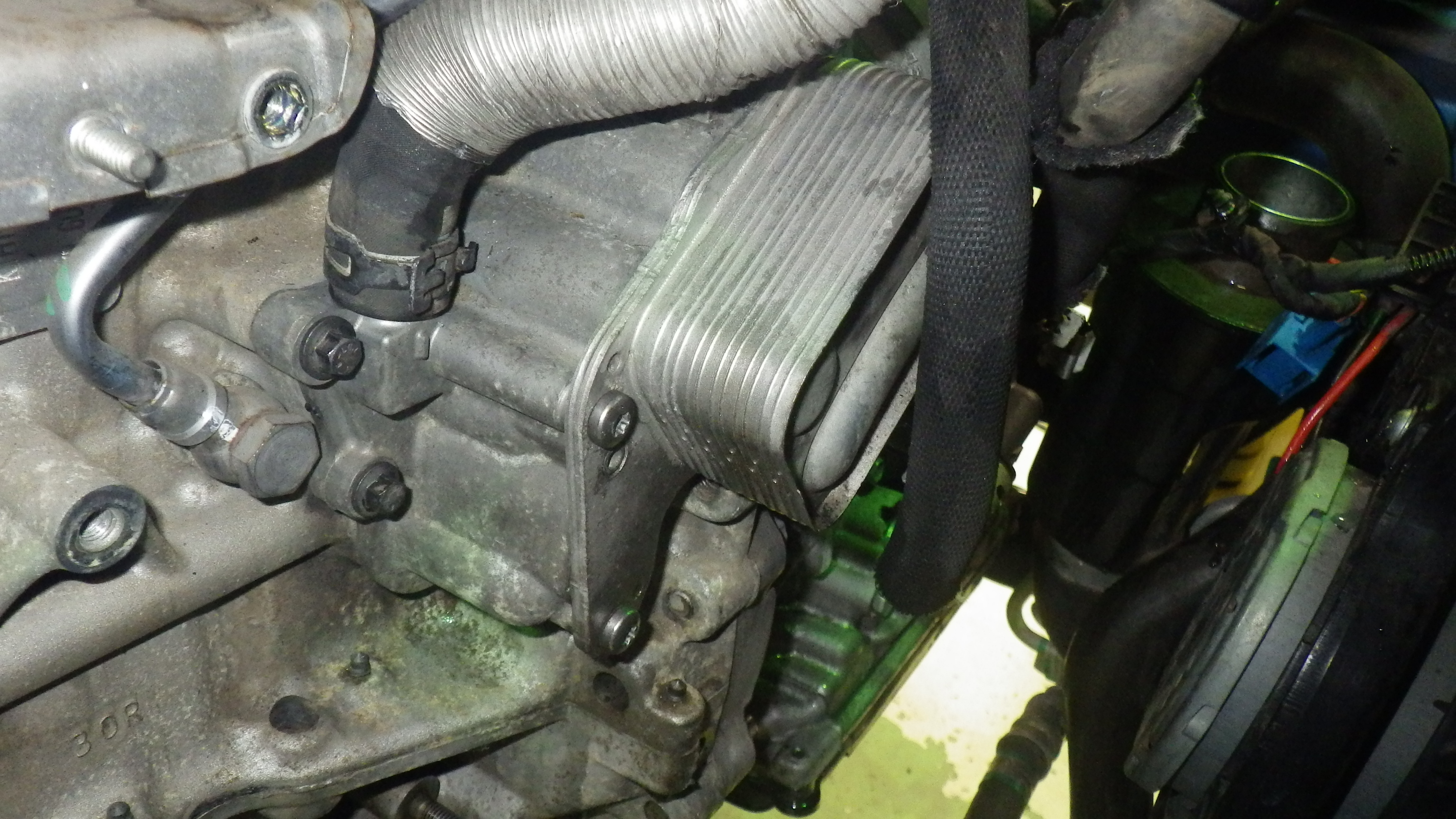 オイル漏れが発生している箇所は、オイルエレメントケース取付部、