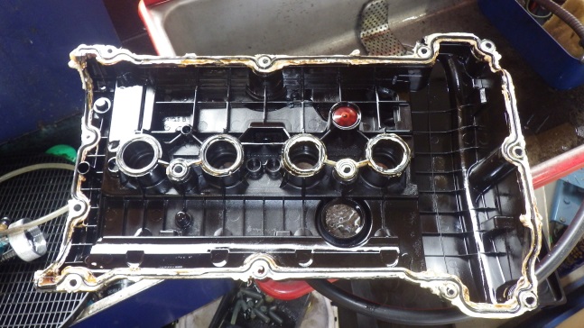 ヘッドカバーガスケット部のオイル漏れ箇所です。