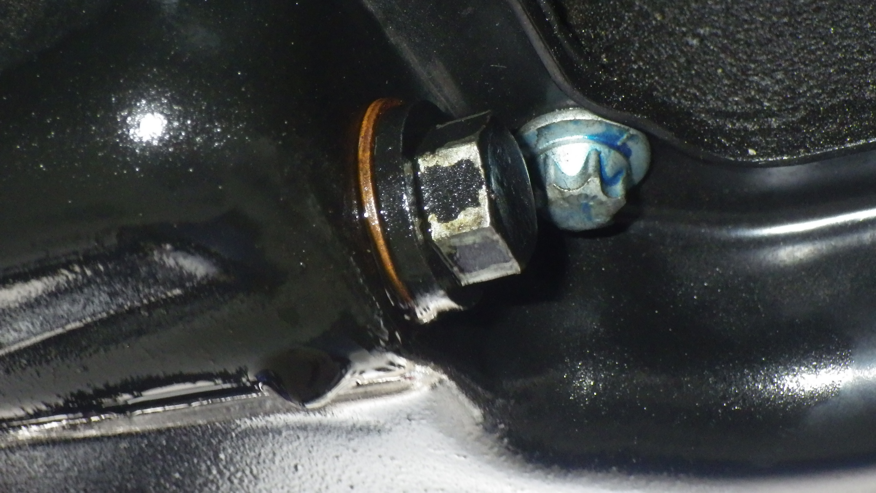 ドレンプラグのガスケットを新品に交換していますので様子を見てください。