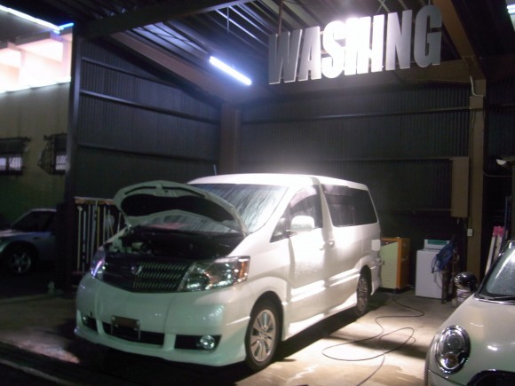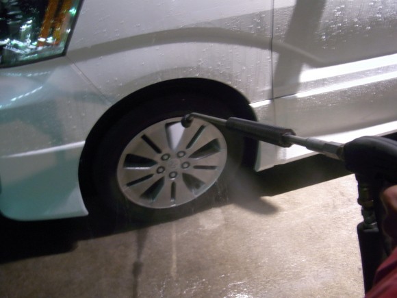 研磨時の粉を洗い流し、足廻りも温水高圧洗浄機で汚れを飛ばしちゃいます (^^)/ジャー