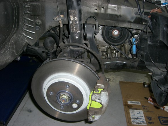 ストラットを組み付け、ブレーキパッド、ブレーキディスクを新品に交換し、足回りは完成。