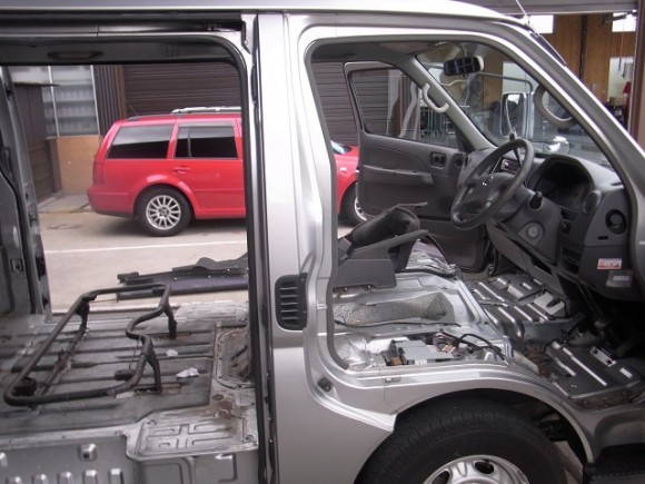 リアシートのフレームは年数劣化の為、剥がれているのでリペイントしました。