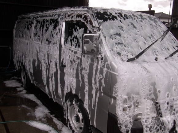 外装磨き完了後、コンパウンドに含まれる油分を取り除きウォーターコートを施していきます