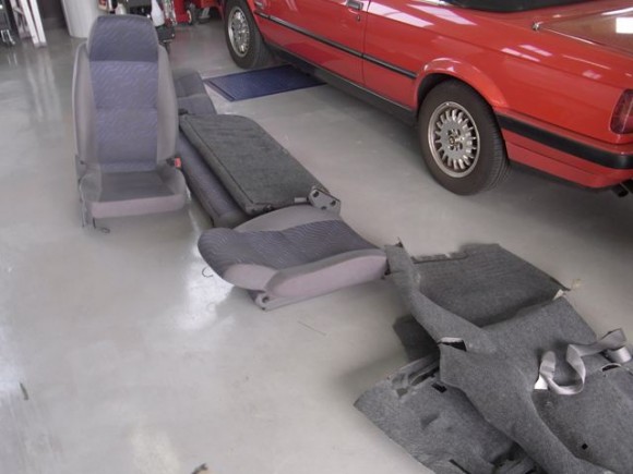 次に、本店で洗浄して頂いたシートやカーペットを取り付けます