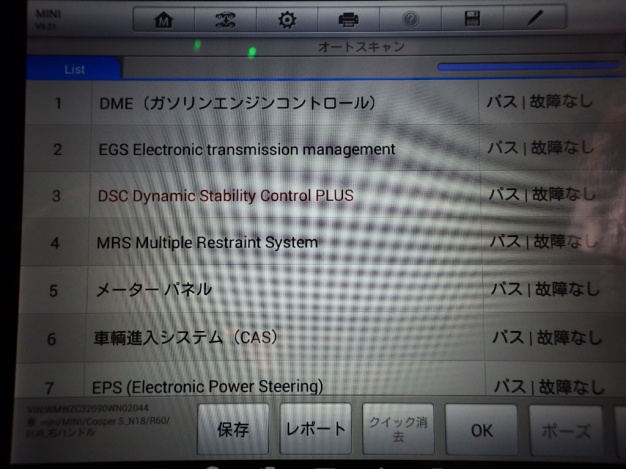 テスターにて各制御系統の診断を行いましたが異常ありませんでした。併せてサービスインターバルのリセットを行いました。
