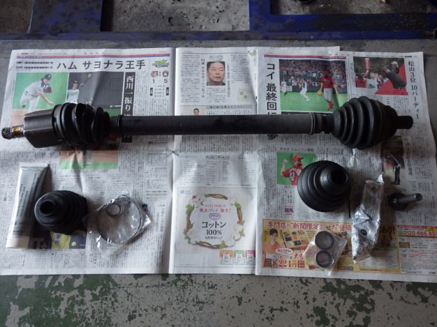 右フロントのアッパーサポートに亀裂が入っていましたので交換しました。