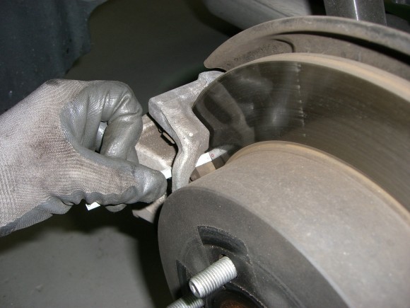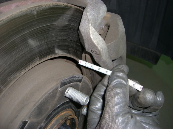 フロントパッドの残量点検中。
