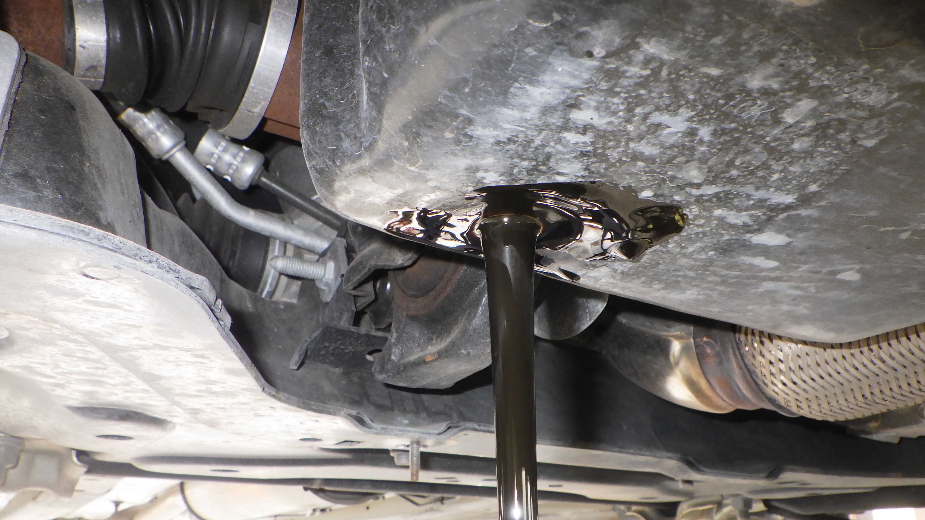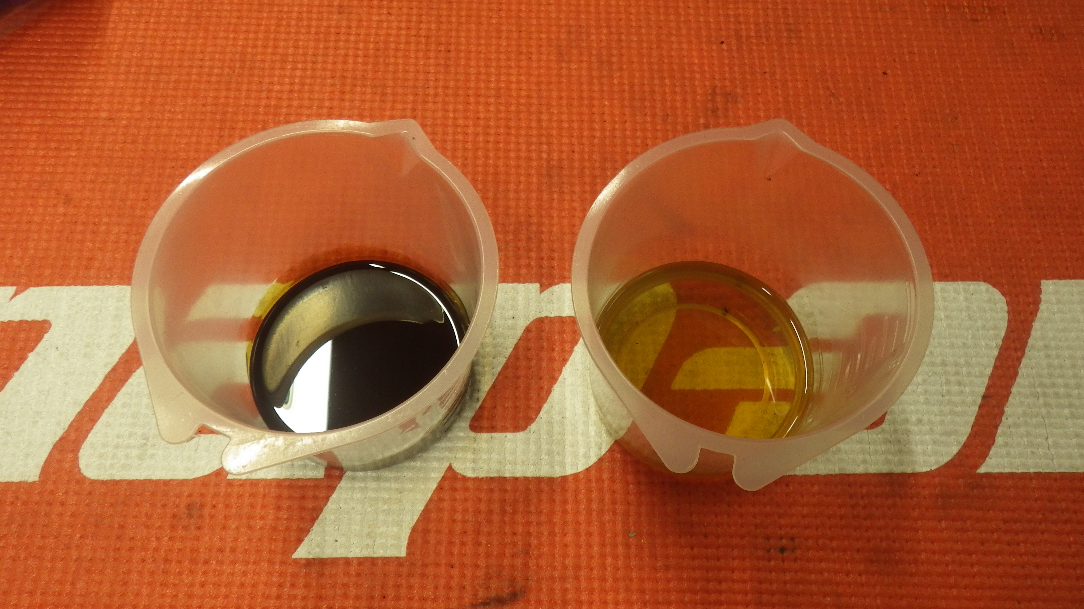 交換前、交換後のオイルです。交換後オイル量の点検も実施しています。