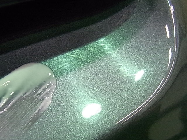拡大するとこんな感じです。 (左 施工前です。 右 施工後です!) 傷が消え光沢も出ましたネ